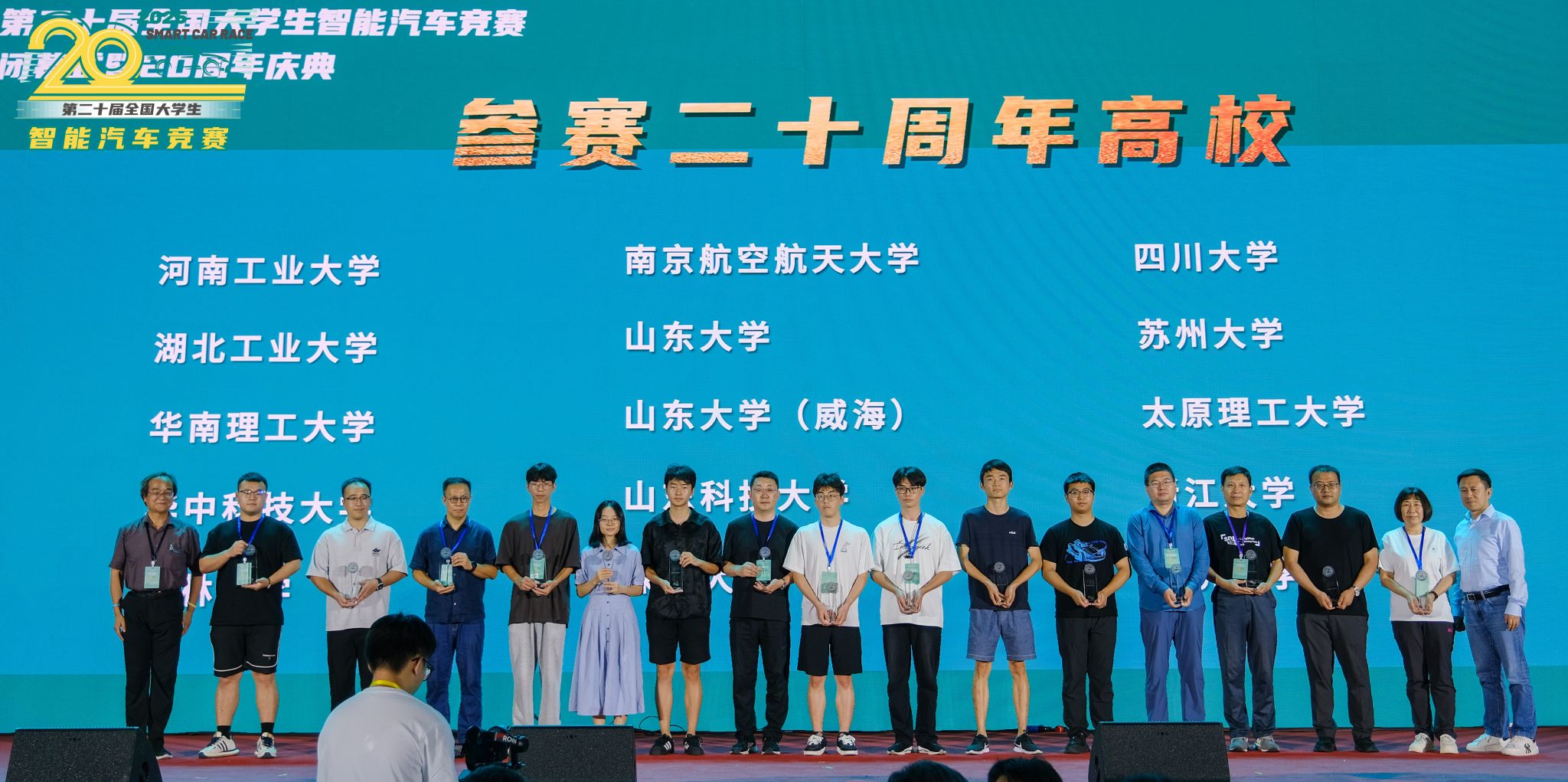在总决赛闭幕式上,组委会颁发了“全国大学生智能汽车竞赛二十年连续参赛奖”,共有30所高校获此殊荣,包括北京理工大学、电子科技大学、东南大学、国防科技大学、哈尔滨工业大学、华中科技大学、华南理工大学、山东大学、四川大学、必赢bwin线路检测中心官网、浙江大学等。必赢bwin官网张志明老师作为参赛指导教师代表上台领奖。