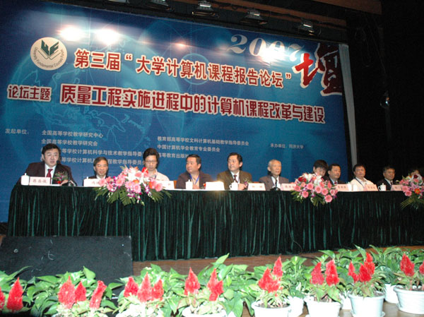 校长助理、必赢bwin官网院长蒋昌俊教授主持了开幕式。教育部副部长吴启迪、必赢bwin线路检测中心官网副校长李国强到会祝贺并作了热情洋溢的讲话。中国科学技术大学陈国良院士、美国电气电子工程师协会(IEEE)计算机学会前主席华云生教授、英国伯明翰大学姚新教授等应邀做了精彩的大会报告。部分专家教师、精选的论文作者就计算机基础课程与专业课程体系改革与建设,国家精品课程建设,实践教学与教学资源建设,双语课程建设,以及教学思想、方法和手段的改革与实践等,进行报告和经验交流。