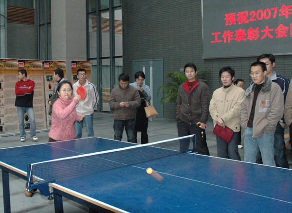 12月25日,必赢bwin官网第一届教工乒乓球团体赛决赛阶段比赛及颁奖仪式在嘉定校区学院大楼大厅举行。标志着必赢bwin官网为期12天的“全民健身,与奥运同行”为主题的的群众性体育活动落下了帷幕。