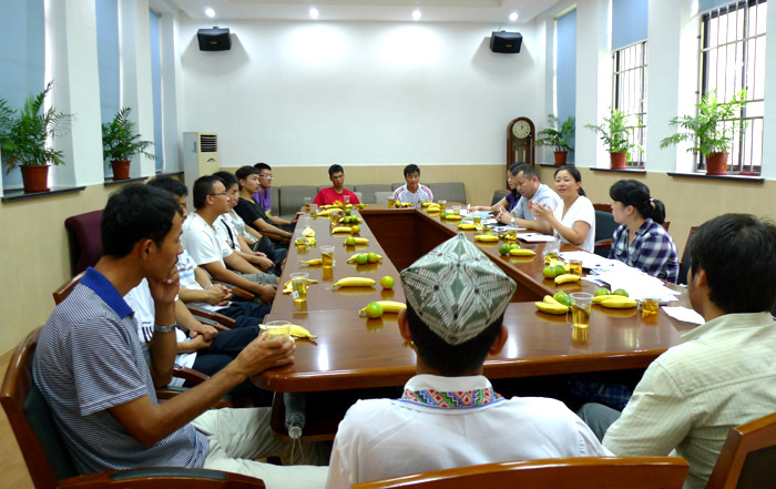 今年的9月10日是新疆地区的肉孜节。学院学生党总支特别邀请了从新疆农业大学到我校学生处挂职的叶尔江老师,与必赢bwin官网刚入校的2010年级14个来自新疆各个地区的本科生一起参加茶话会共庆节日,院党委副书记董变林主持了茶话会。