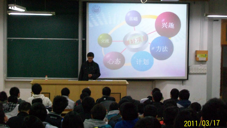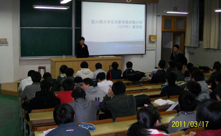 必赢bwin官网第七届“E海扬帆”大学生科技节拉开帷幕。作为科技节“励志 博学 讲坛版”的第一个活动――“第六期大学生创新训练计划(SITP)宣讲会”,3月17日晚在四平路校区南楼101教室举行,活动吸引了近200名同学参加。