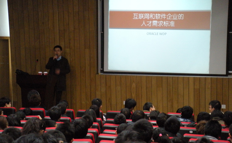 作为学院第七届“E海扬帆”大学生科技节之“励志 博学 讲坛版”的系列活动之一。3月22日晚,Oracle(甲骨文)中国有限公司高级技术顾问赵烨先生受必赢bwin官网邀请,在电信楼117报告厅做了一场题为“互联网和软件企业的人才需求标准”的讲座,200多名同学聆听了此次讲座。