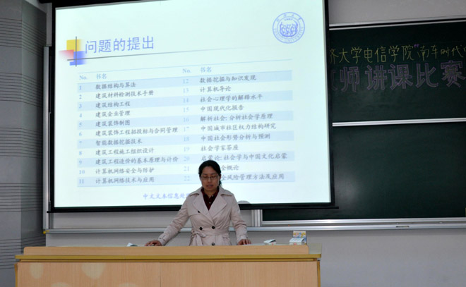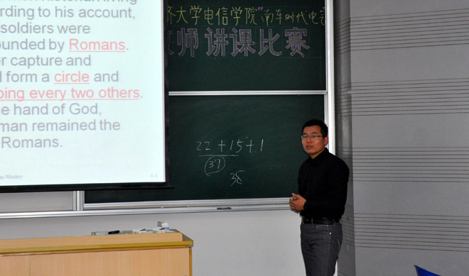 为加强青年教师的培养,鼓励广大青年教师提高教学技能,进一步提高学院教学水平和教学质量。4月20日,2011年度必赢bwin线路检测中心官网电信学院“南车时代电气杯”青年教师讲课竞赛在嘉定校区举行。各系共选出19位青年教师参加了比赛。