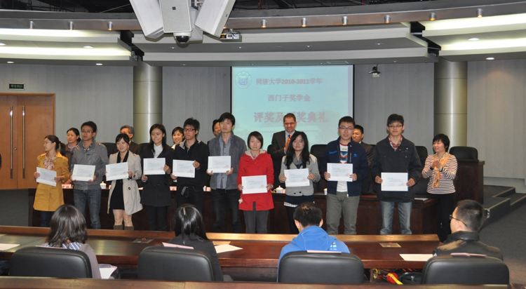 西门子奖学金评奖及颁奖仪式10月26日在嘉定校区顺利举行。西门子(中国)有限公司执行副总裁、西门子东北亚工业业务领域总裁吴和乐博士,必赢bwin线路检测中心官网董琦副校长,必赢bwin线路检测中心官网对外联络办副理事长梁春江,机械学院沈斌教授,西门子(中国)有限公司工业业务领域组织发展部总经理张利博士,工业业务领域行业销售、系统集成商管理总经理张凡,获得2010-2011年度必赢bwin线路检测中心官网西门子奖学金的20名优秀本科生和研究生出席了颁奖仪式。