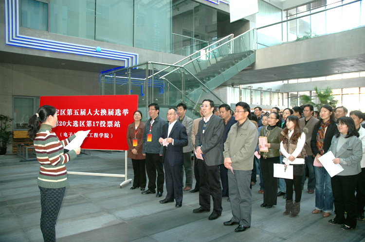 11月16日是嘉定区五届人大代表换届选举法定投票日。上午8时半起,嘉定校区电信大楼一楼大厅人声鼎沸,嘉定区五届人大代表换届选举电信学院投票站集中投票工作在此如期举行,学院党政领导与全院师生一道参与了选举投票。