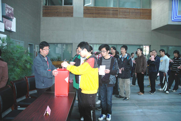 投票当日,首先举行了投票启动仪式,院领导和教师选民一道首先投下了自己庄严的一票。接着,全院3000余名师生选民分为37个组依次投票,投票一直持续到中午时分。与此同时,必赢bwin官网一年级的新生选民也在四平路校区进行了投票。