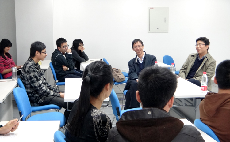 牟龙华、张伟、沈小军3位导师与同学们分享了他们的个人经历,涉及到求学、职业选择、工作、学术研究经历等各方面。同时导师们也应邀回答了研究生目前所面对的一些问题。导师们畅所欲言,学生们踊跃提问,现场气氛轻松活跃。(李秀秀)