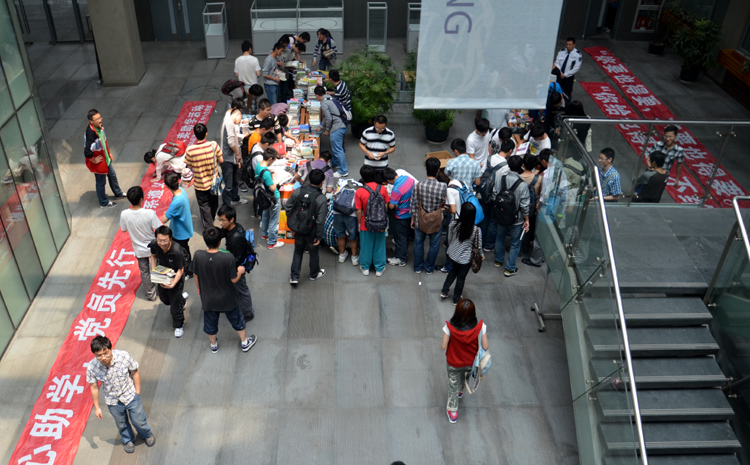 5月15日下午,由学院团委及各毕业班党支部联合组织的电信学院毕业季系列活动之“E脉相承―闲置书籍、物品爱心义卖”在嘉定校区电信大楼底楼大厅举行。