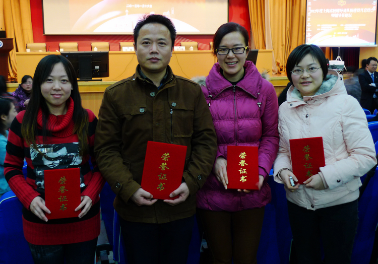 市教委德育处处长胡宝国总结了“2012年度上海高校辅导员队伍建设月”的情况,9所高校党委学工部部长还对本校辅导员队伍建设特色项目进行了交流。会议表彰了第八届、第九届上海高校辅导员论坛获奖者,2012年上海高校优秀辅导员博客(微博)十佳辅导员博客奖获奖者,“首届上海高校辅导员职业能力竞赛”获奖者以及“2012年上海高校辅导员年度人物”,必赢bwin官网辅导员杨新获得“2012年上海高校辅导员年度人物”。