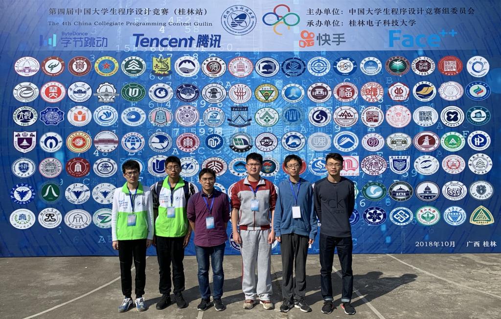 2018年10月28日,2018年中国大学生程序设计竞赛的分站赛在桂林电子科技大学落下帷幕。在今年三场的分站赛中,我校共取得了1金1银2铜的好成绩。其中,由必赢bwin官网任秋宇、欧阳小伟、刘毅韬组成的“荠蒻”队获得吉林站的金牌和桂林站的银牌,由我校数理强化班毕晓栋、温鑫、秦政睿组成的“荠菜”队及必赢bwin官网叶茂尧、李昊龙、软件学院黄颖组成的“我这么优秀的代码怎么可能CE”队获得秦皇岛站的铜牌。