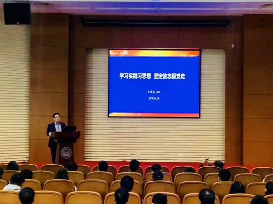 上海市民办高校党工委副书记王瑞杰教授受邀为学员们做了以“学习实践习思想,坚定信念跟党走”为主题的专题讲座。他以“习思想指引新时代”、“爱国爱党无问西东”以及“坚定信念跟党走”三个部分生动形象地为学员们介绍了习近平新时代中国特色社会主义思想的形成过程、党的初心与宗旨、组织与纪律等多方面内容。王教授语重心长地指出:同志们要脚踏实地,不怕吃苦,积极主动地扎根基层,敢为人先。这不仅是对一个合格的共产党员的要求,更是大家以后成功的必经之路。